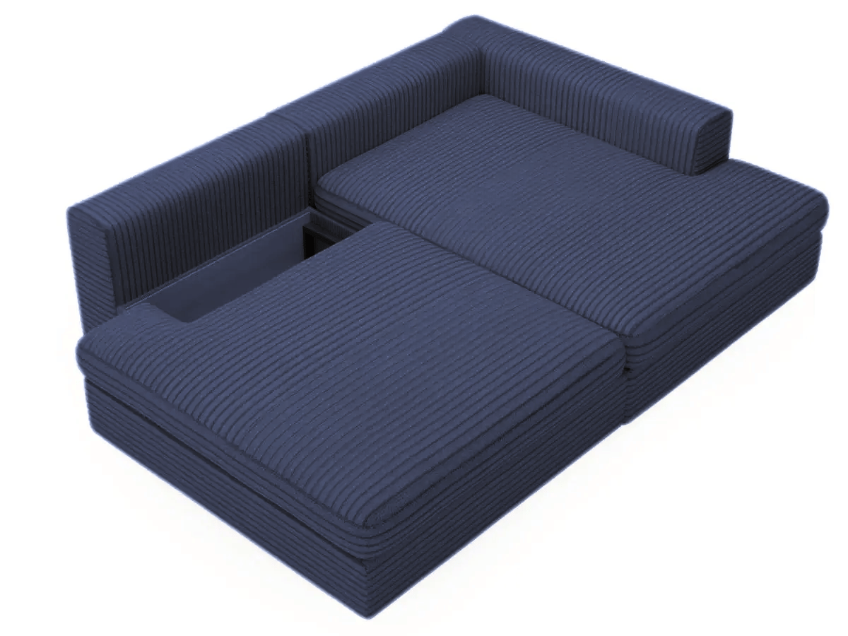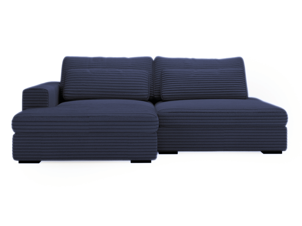 Canapé d'angle convertible grande méridienne en velours côtelé bleu MONTPARNASSE