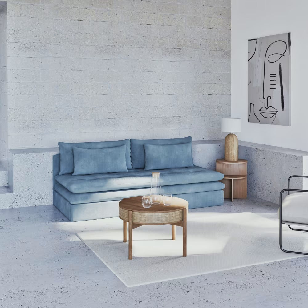 Astucieux, il cache un coffre de rangement pratique pour vos plaids et oreillers.