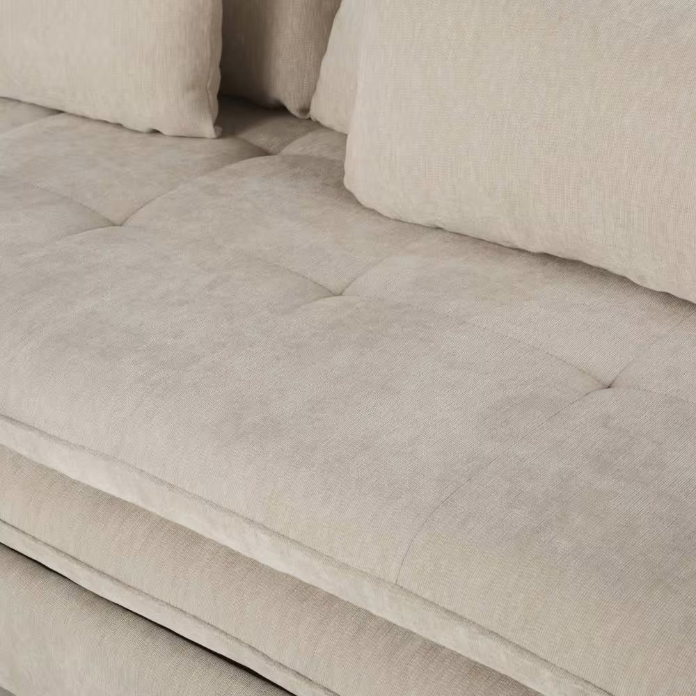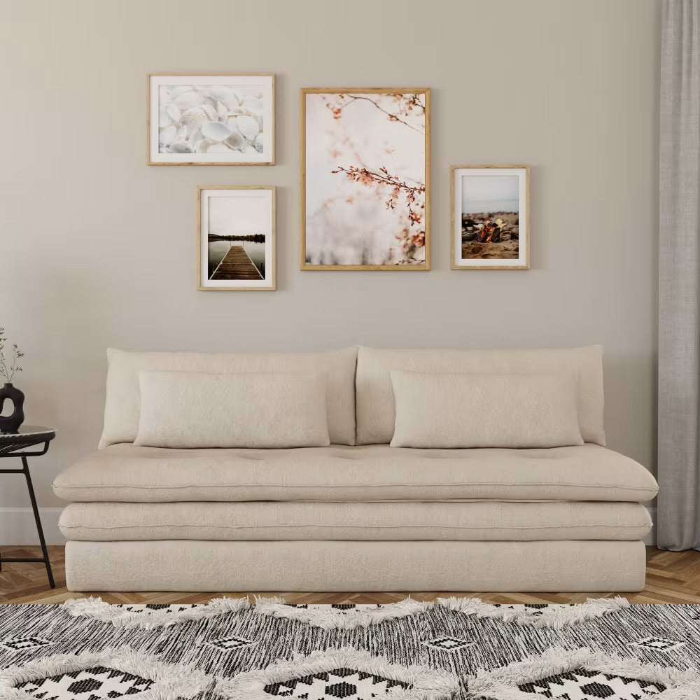 Craquez pour le charme du canapé convertible CLIO en tissu recyclé beige, parfait pour vos moments cocooning.