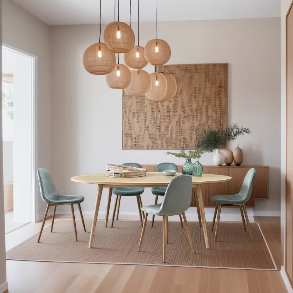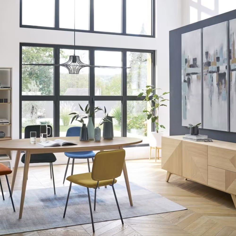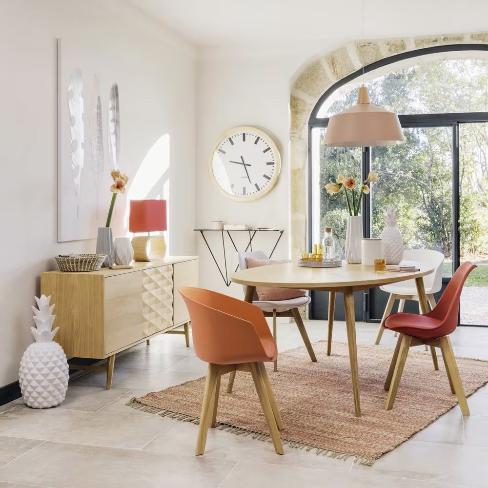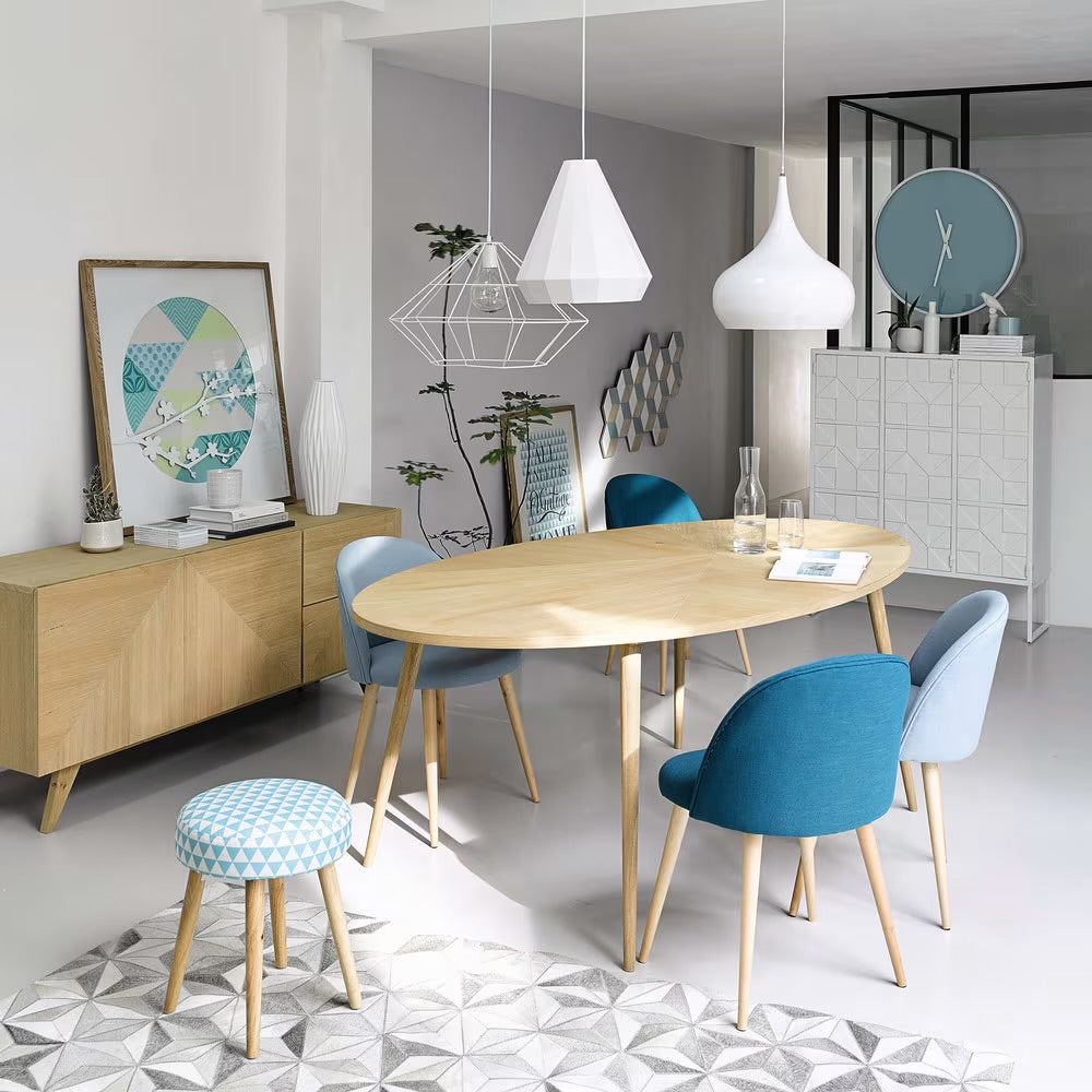 Sa forme ovale et son bois blond dégagent une atmosphère chaleureuse et conviviale.